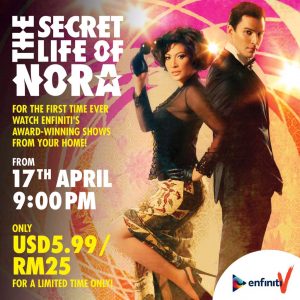 For the first time ever, performing arts juggernaut Enfiniti brings its stage productions to the digital world. Yes, you can watch ‘The Secret Life of Nora’ and more via EnfinitV on vimeo. For only RM25 (USD5.99), you can stream the channel for 48 hours. Access it at vimeo.com/enfinitv
